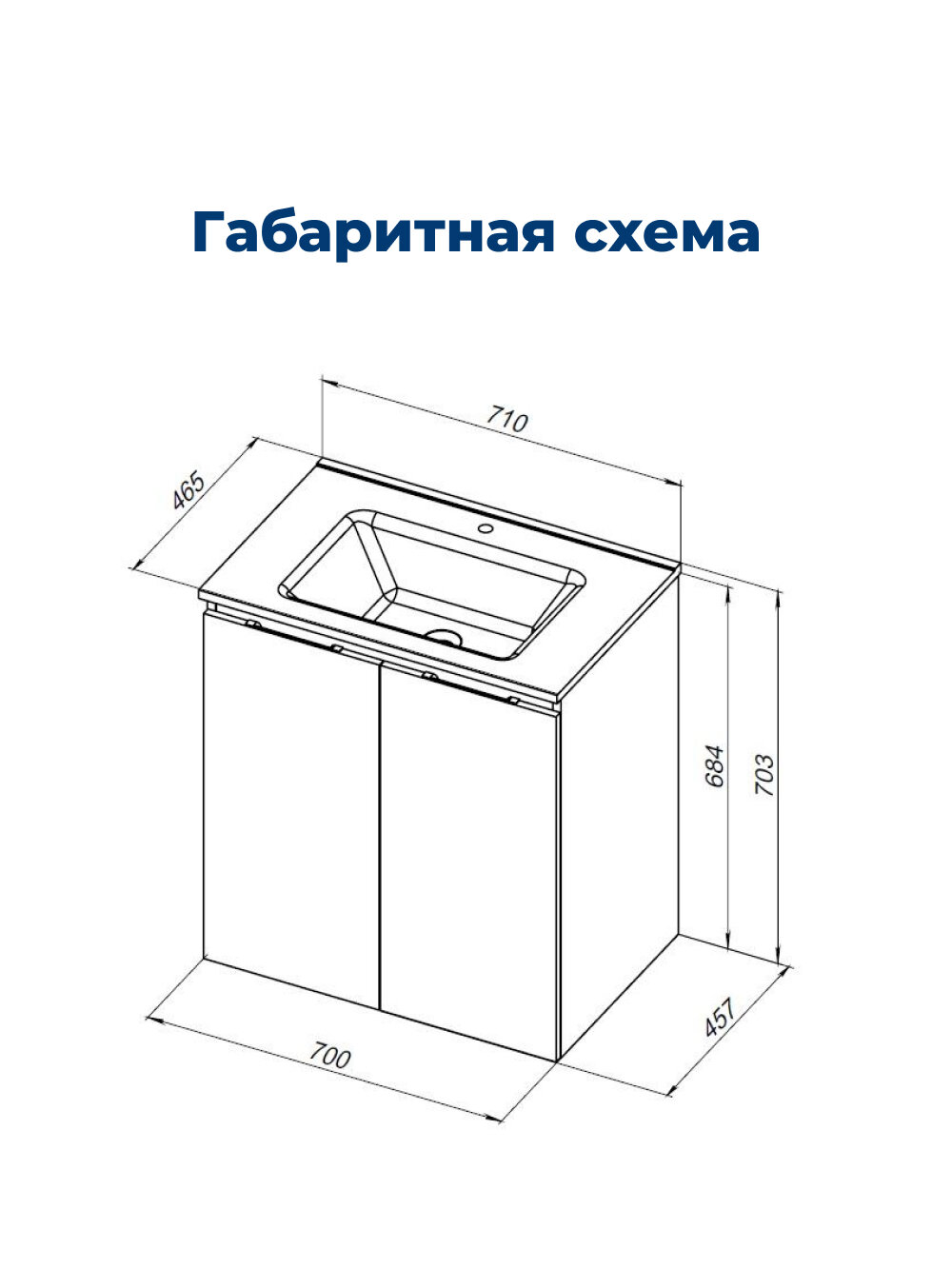 Тумба с раковиной Алвита New 70 2 дверцы подвесная дуб веллингтон белый