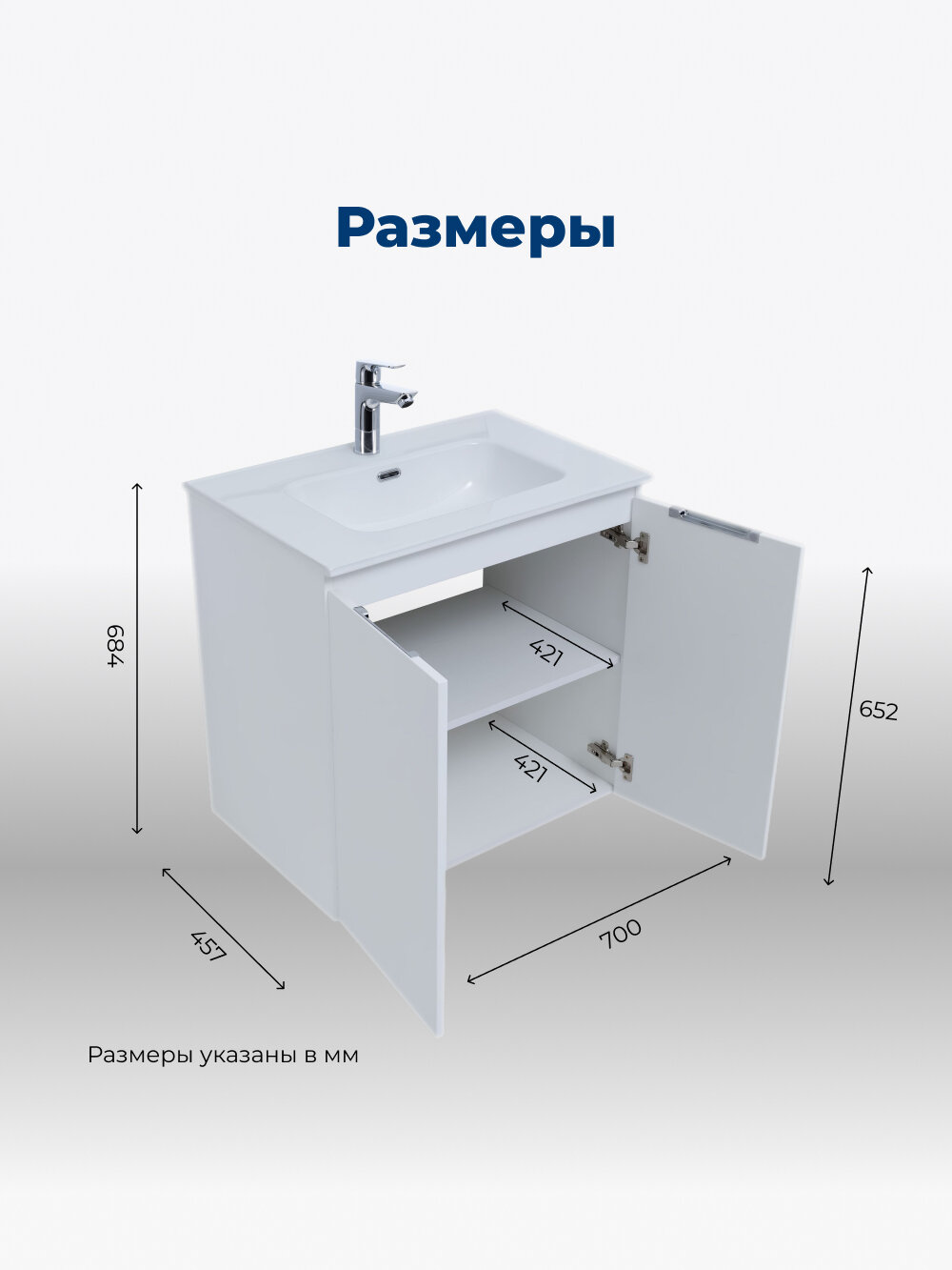 СохранитьТумба с раковиной Алвита New 70 2 дверцы подвесная белая матовая интересное: