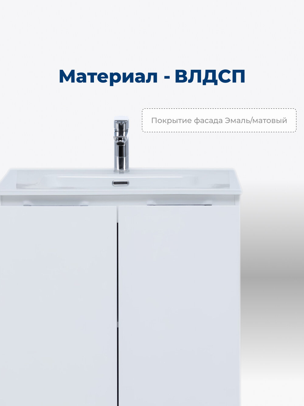 Тумба с раковиной Алвита New 60 1 ящик 2 дверцы белая матовая