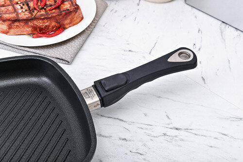 Купить Алюминиевая сковорода-гриль с антипригарным покрытием и съемной ручкой, 26 см, черный, серия Сковороды и воки, AMT Gastroguss, AMT I-E264G