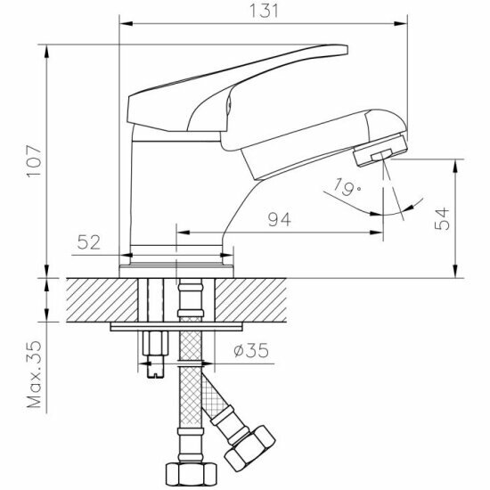 | Комплектация | Пластиковый аэратор; Керамический картридж 35 мм; Гибкая подводка 35 см – 2 шт; Присоединительная группа для горизонтального крепления; Металлическая рукоятка |