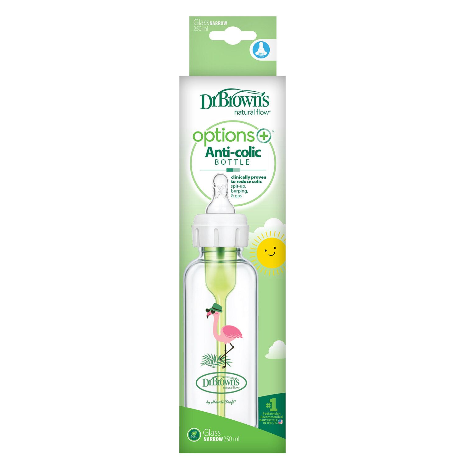 Бутылочка антиколик Dr. Brown's с узким горлышком и соской от 3-х мес., Фламинго, стекло, 250 мл