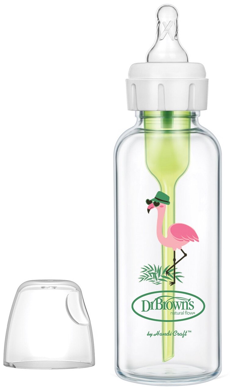 Бутылочка антиколик Dr. Brown's с узким горлышком и соской от 3-х мес, Фламинго, стекло, 250 мл
