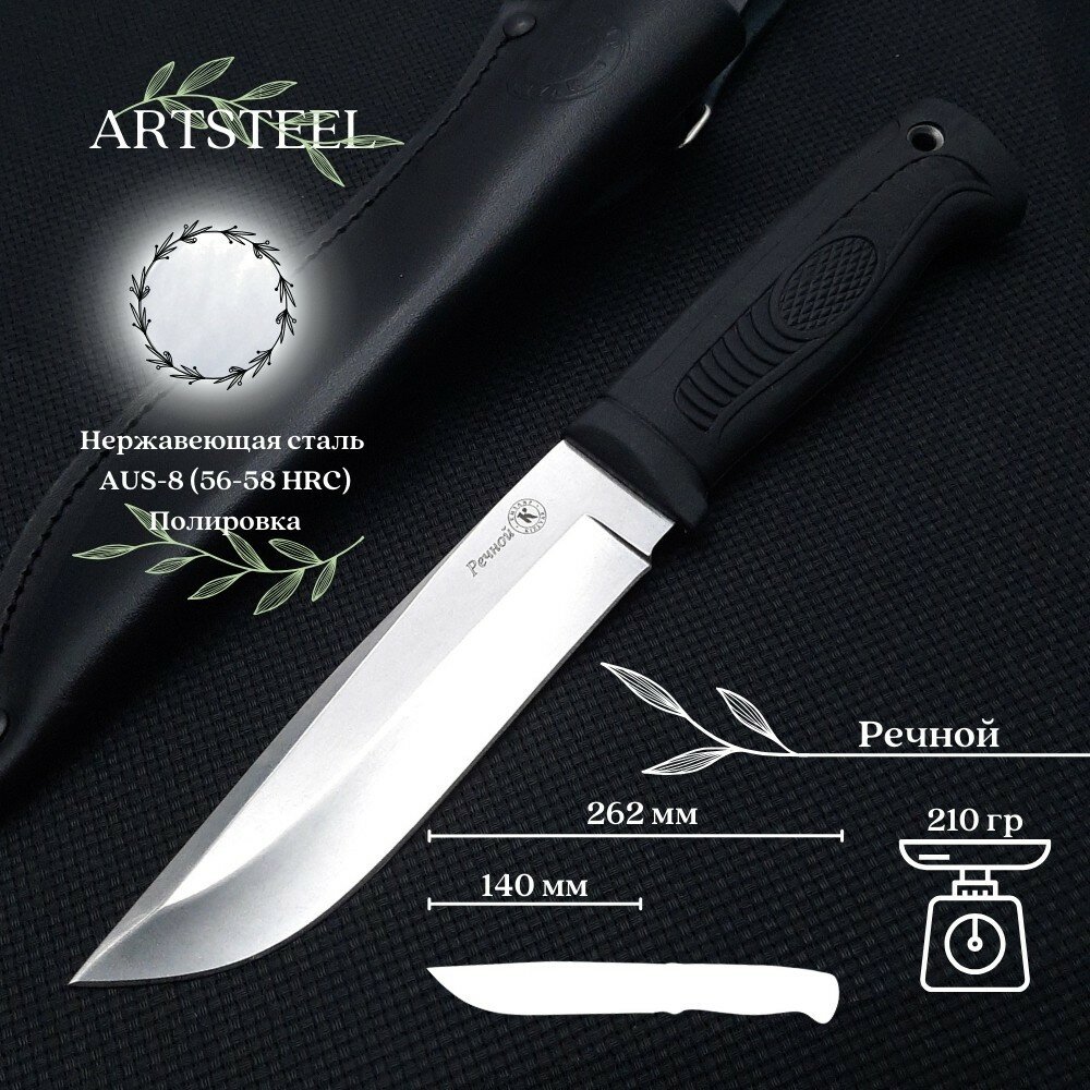 Нож "Речной" AUS-8, полированный, эластрон