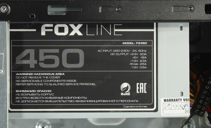 Корпус FOXLINE FL-702 mATX 450W FL-702-FZ450+RH-I30-26FK-R1