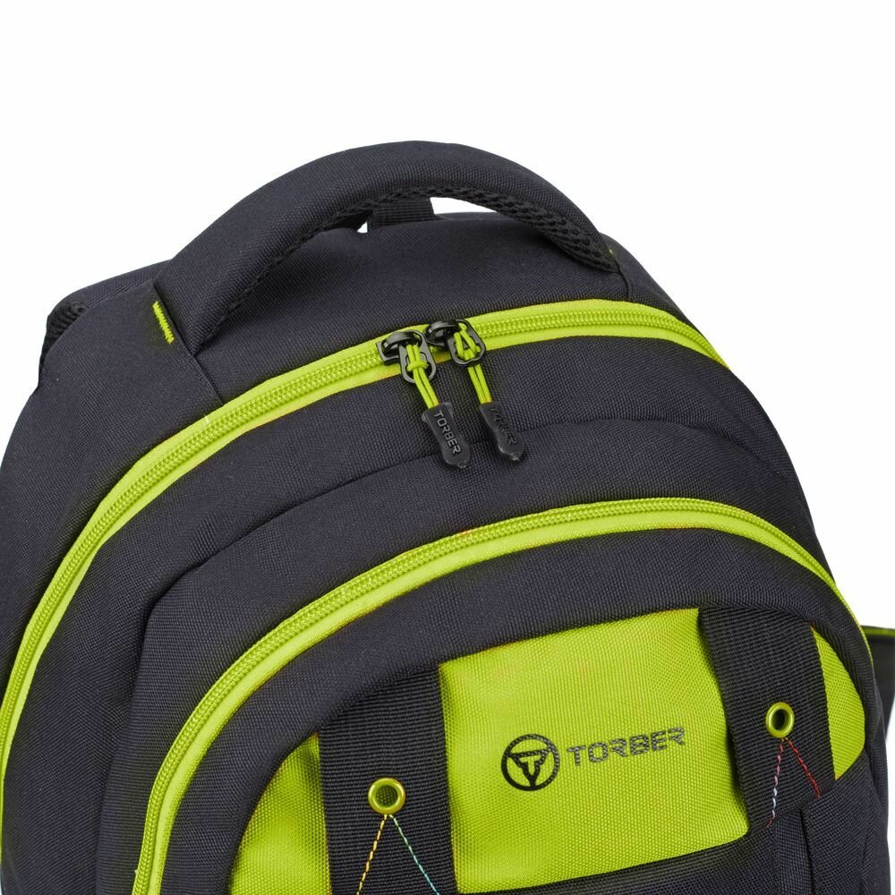 Школьный рюкзак TORBER CLASS X T5220-22-BLK-GRN, черный с зеленой вставкой, полиэстер, 45х32х16 см, 17 л