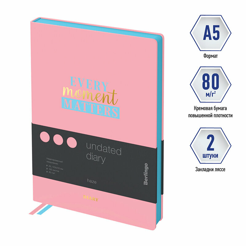 СохранитьЕжедневник недатированный Haze, А5, 160 листов, розовый интересное:
