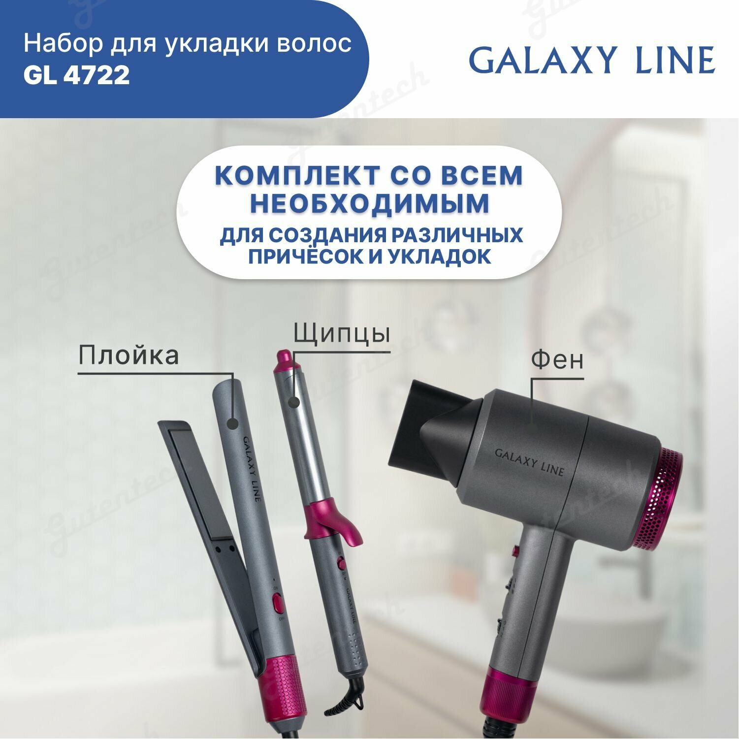 Набор для укладки волос GALAXY LINE GL 4722 : Фен GL4722/1 , Щипцы GL4722/2, Плойка GL4722/3