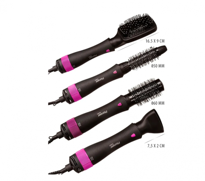 Фен-щетка Pioneer HB-1003D с функцией Холодный обдув и защитой от перегрева, 4 насадки, 2 режима нагрева, 1000 Вт