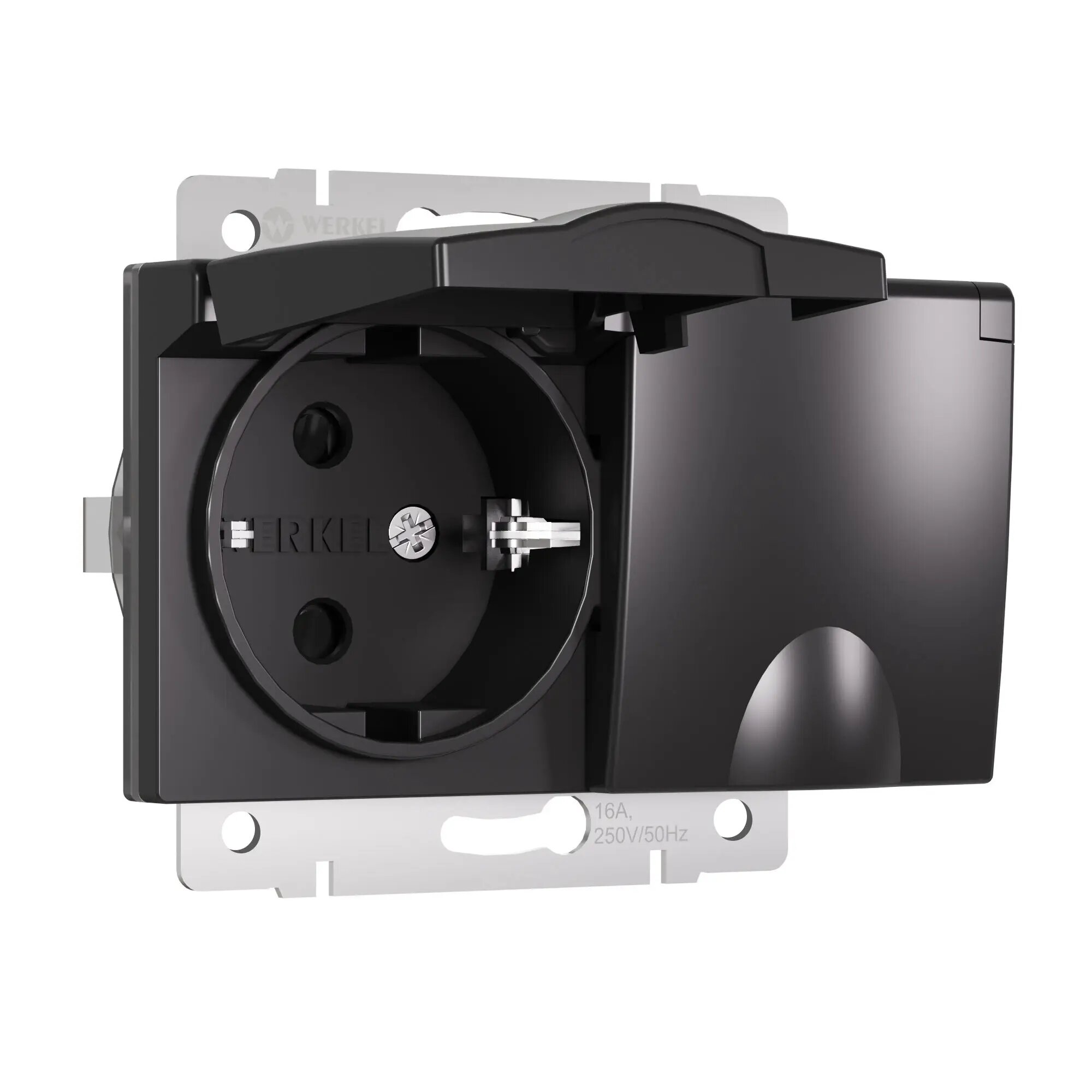 Штепсельная розетка встраиваемая WERKEL 16A 250V WL08-SKGSC-01-IP44 / W1171208 с/з, шторками и защитной крышкой черный