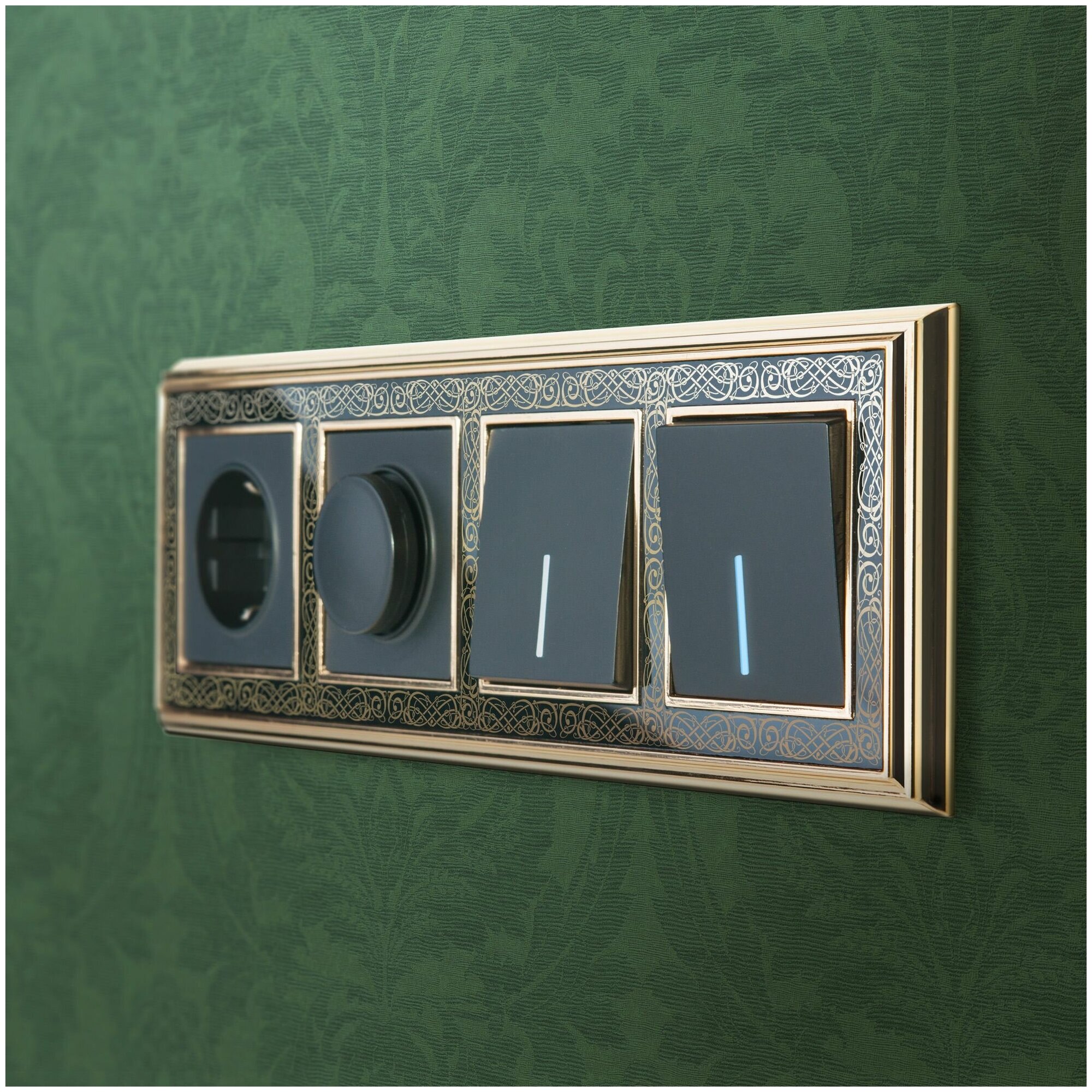 Проходной двухклавишный выключатель/переключатель с подсветкой Werkel W1122111 шампань IP20