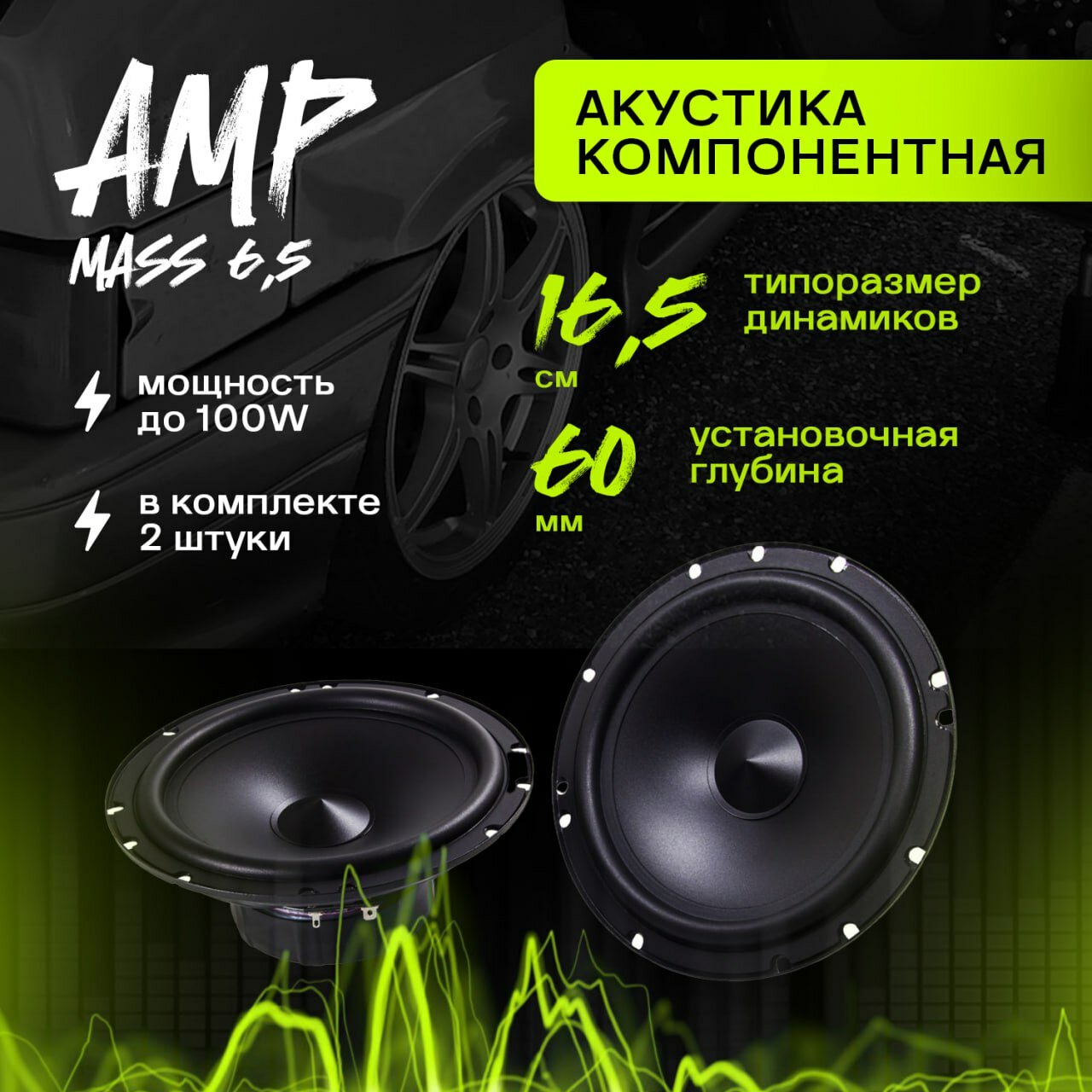 Акустика компонентная AMP MASS 6.5, 16,5 см (6,5"), 100 Вт