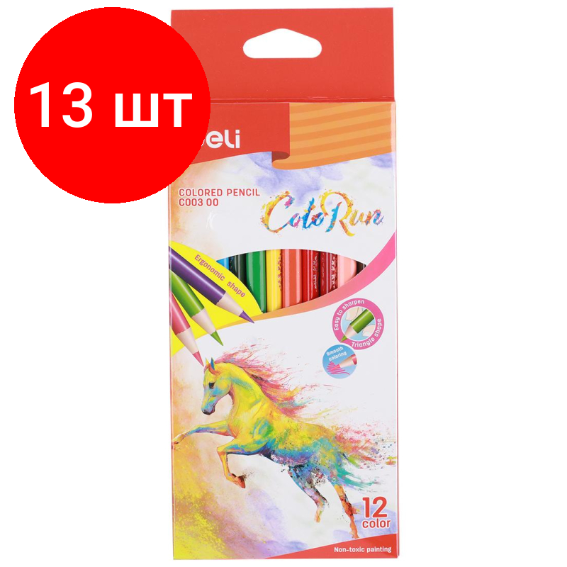 Купить Комплект 13 наб., Карандаши цветные Deli ColoRun трехгран. тополь 12 цв/наб EC00300