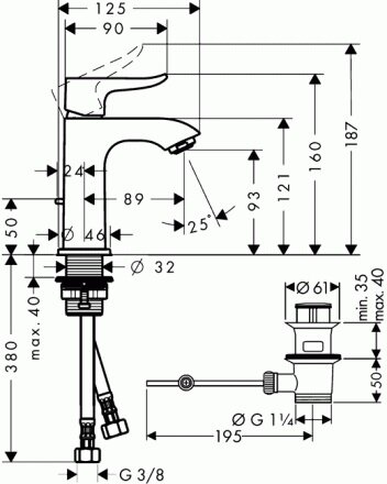 Смеситель hansgrohe Metris для маленькой раковины со сливным гарнитуром, хром 31088000