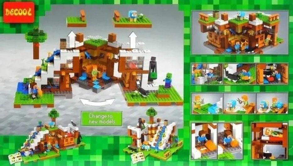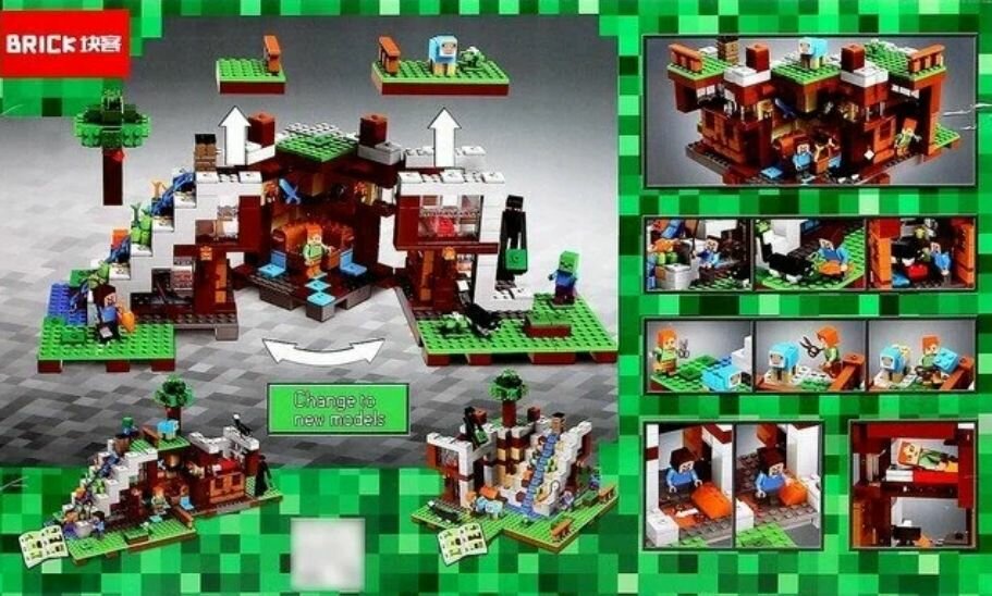 Конструктор Jisi bricks 829 Майнкрафт — База на водопаде, из серии Компьютерные игры, Майнкрафт