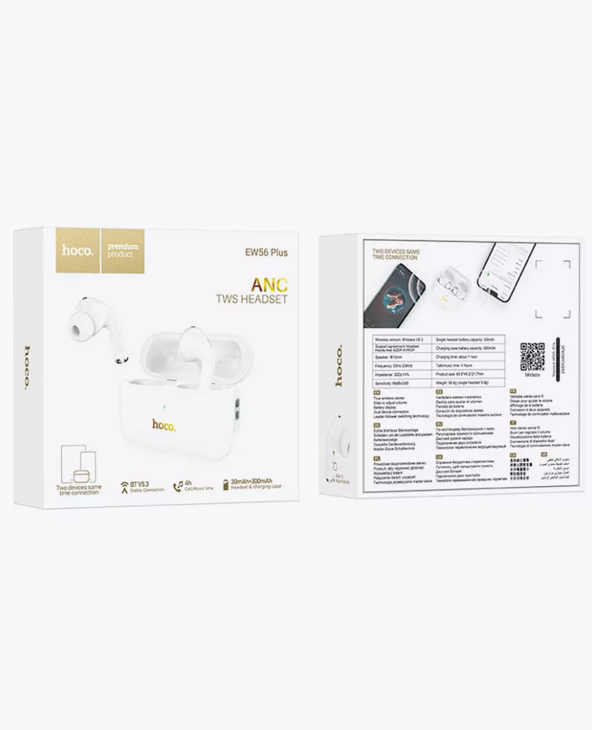 Купить Наушники Hoco EW56 Plus, беспроводные, Bluetooth, TWS, вакуумные, активное шумоподавление, белые 1шт