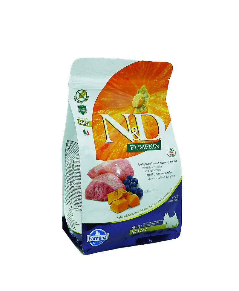 FARMINA DOG N&D GRAIN FREE PUMPKIN ADULT MINI LAMB & BLUEBERRY беззерновой для взрослых собак маленьких пород с ягненком, черникой и тыквой (0,8 кг)
