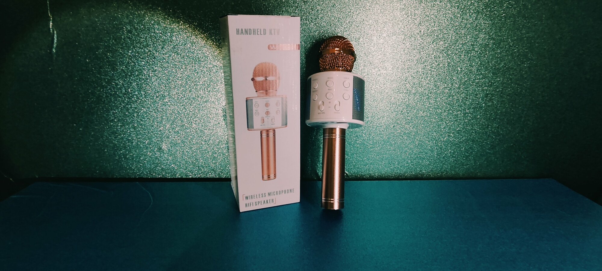 Оригинальный караоке микрофон WS-858 розовое золото интересное: