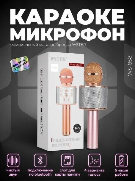 Ниже Вы можете прочитать отзывы на Оригинальный караоке микрофон WS-858 розовое золото, ознакомится с подробными характеристиками, посмотреть интересные обзоры и фотографии на Оригинальный караоке микрофон WS-858 розовое золото.