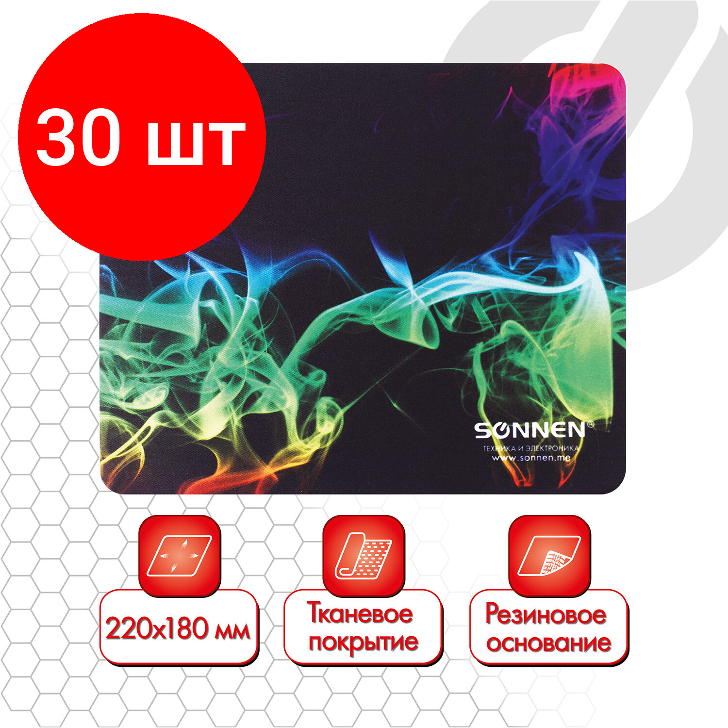Комплект 30 шт, Коврик для мыши SONNEN "SMOKE", резина + ткань, 220х180х3 мм, 513289 интересное: