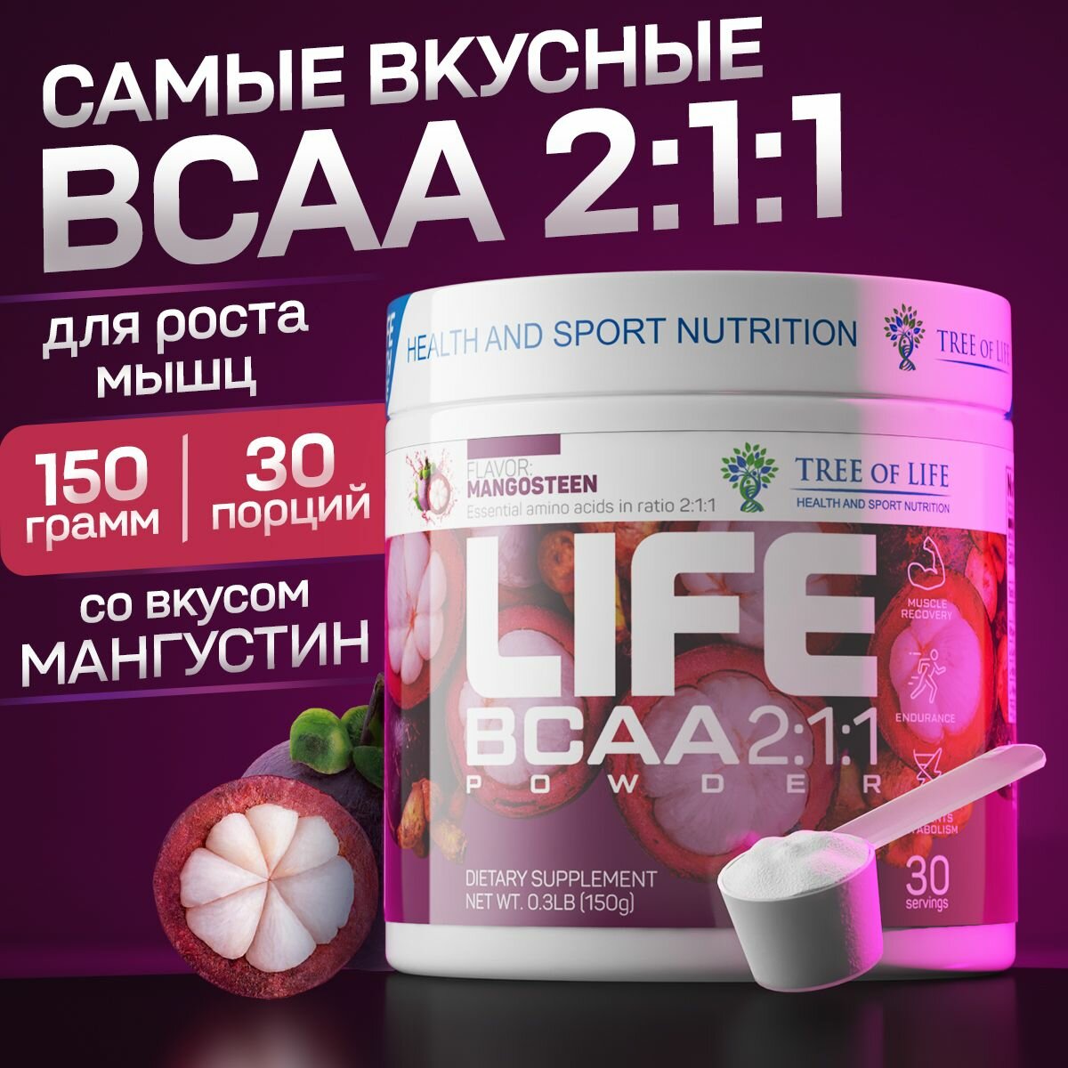 Аминокислотный комплекс бсаа + Витамин С Tree of Life bcaa 2:1:1 "Мангостин", всаа порошок аминокислоты лейцин, изолейцин, валин, 150 гр, 30 порций