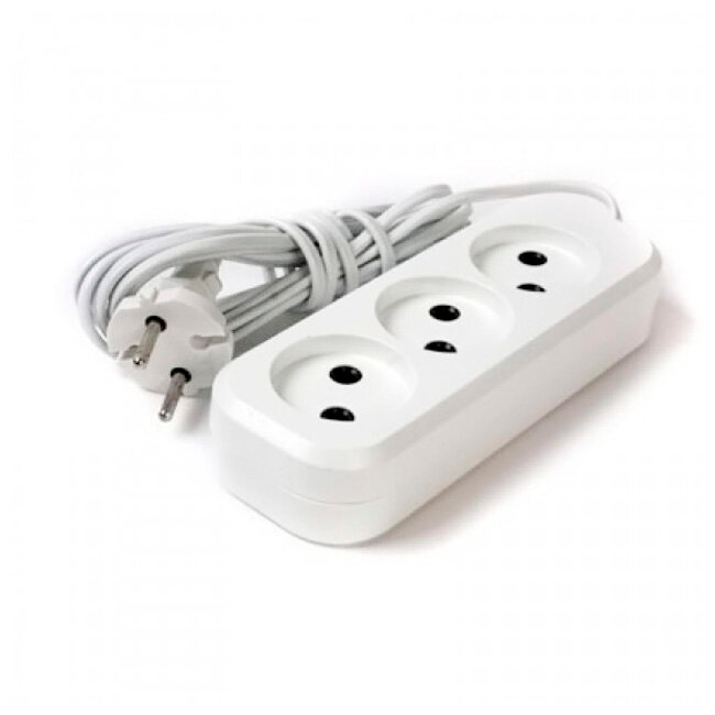 Удлинитель Jett 5м 155-203 РС-3 (провод ПВС 2х0.75) , 3 розетки, б/з, 10А / 2200 Вт белый
