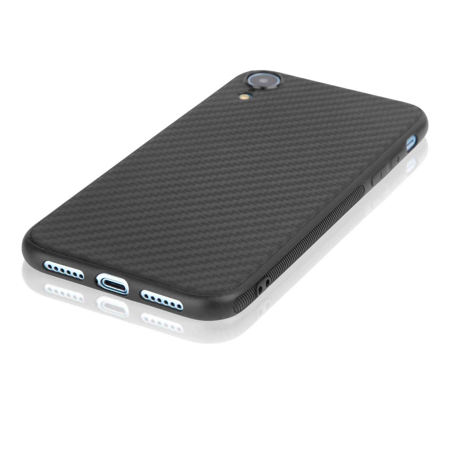 Тонкий силиконовый чехол ROSCO с текстурой карбон для Apple iPhone XR (Эпл Айфон XR), черный