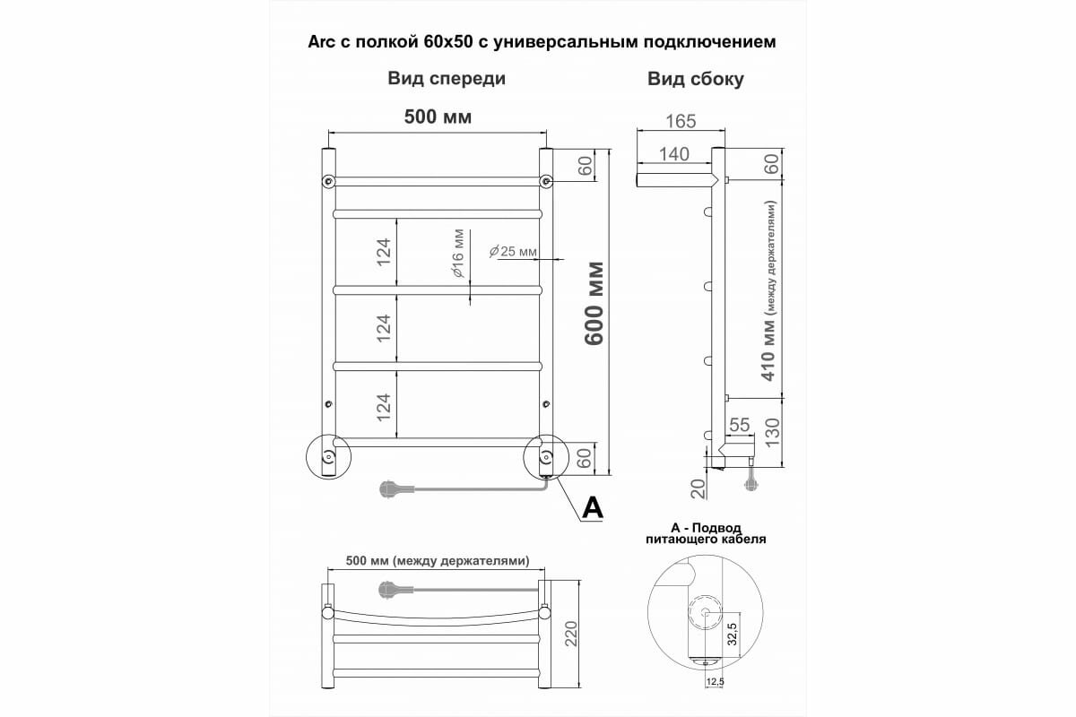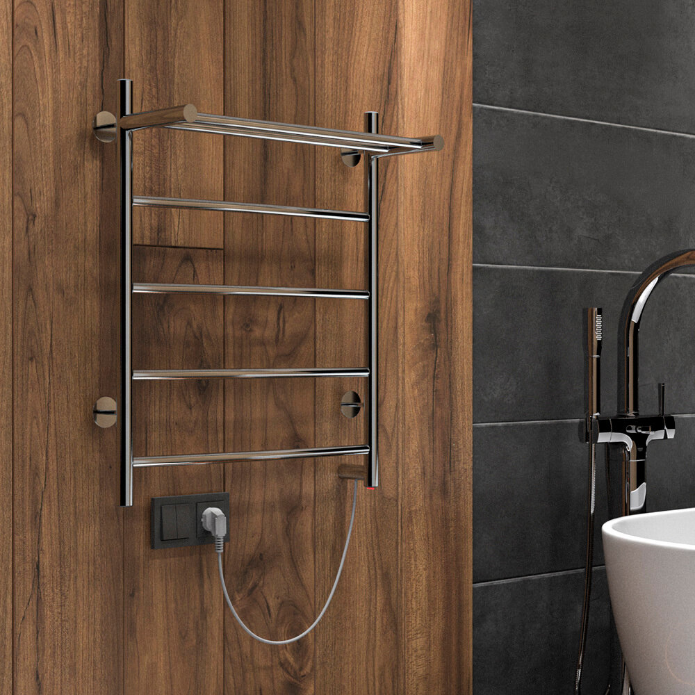Полотенцесушитель электрический INDIGO Arc с полкой 60/50 скрытый монтаж, универсальное подключение