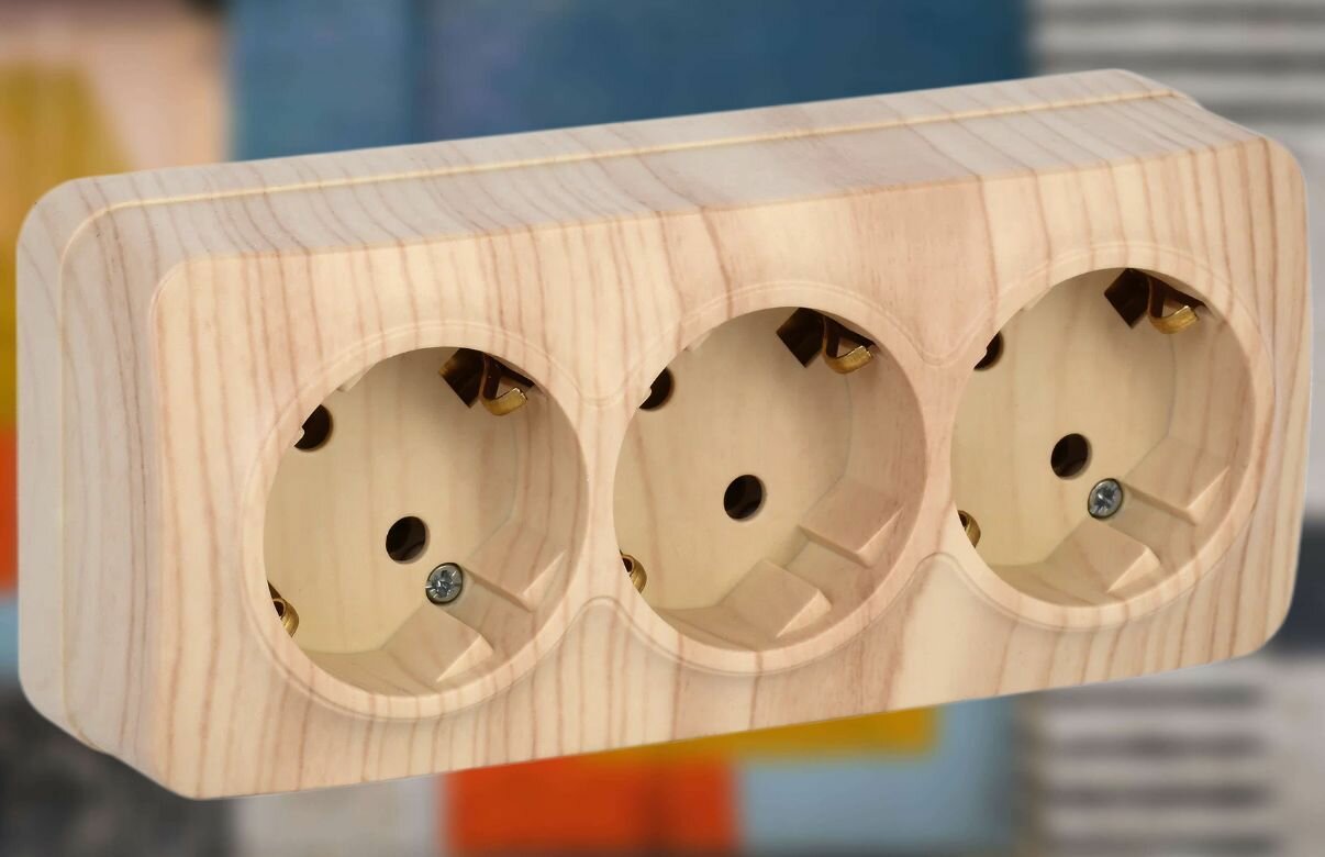 Купить Розетка ЭРА 11-2209-11 3х2P+E Schuko со шторками, 16A-250В, IP20, ОУ, ЭРА Эксперт, сосна арт. Б0020705 (1 шт.)