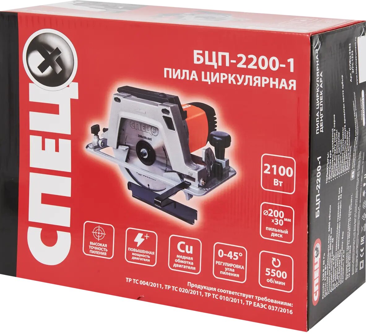 Купить Пила циркулярная сетевая Спец БЦП-2200-1, 2100 Вт, 200 мм