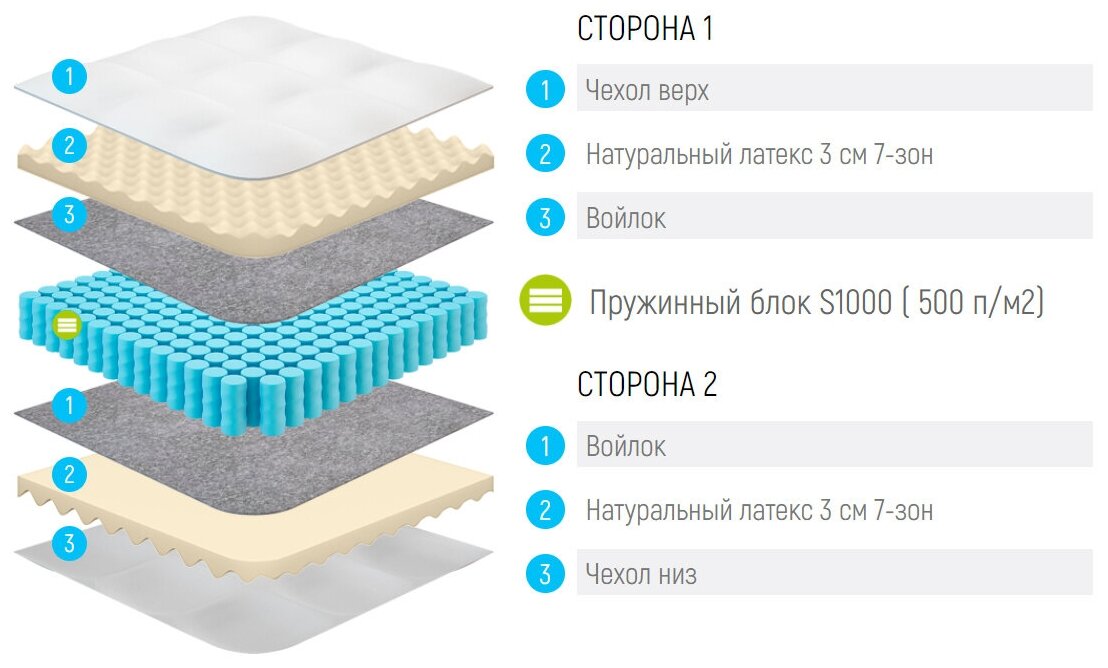 Россия Матрас Lonax Latex S1000 5 Zone 95x195