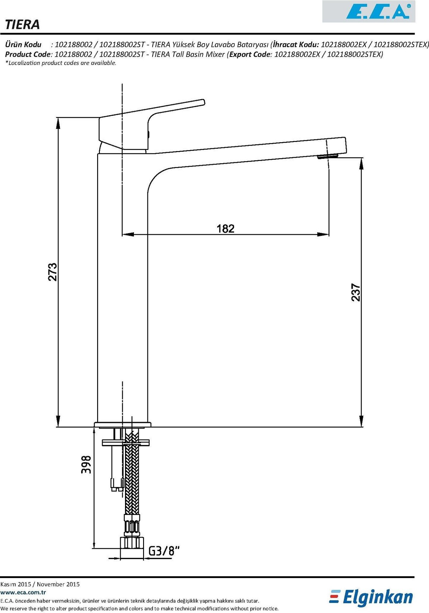 Смеситель для раковины E.C.A 102188002EX TIERA Смеситель для раковины, хром