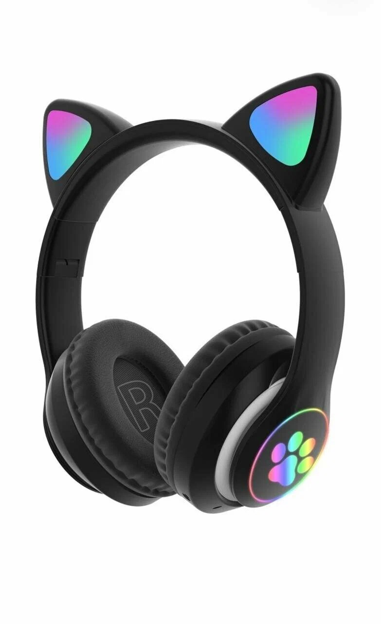 Беспроводные наушники "Кошачьи ушки", светящиеся, CAT STN-28 (черные)