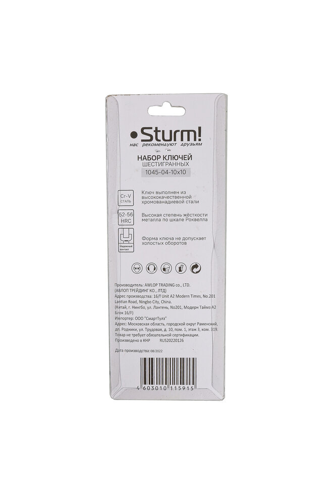 Набор шестигранных ключей Cr-V 10шт. 1,5-10мм пластиковый кейс Sturm! 1045-04-10x10 интересное: