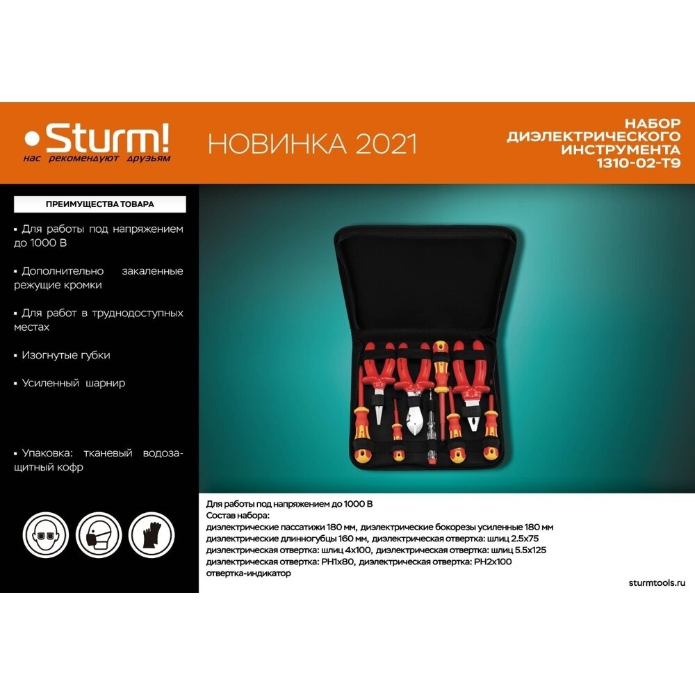 Набор инструментов STURM! 1310-02-T9, 9 предметов, диэлектрический