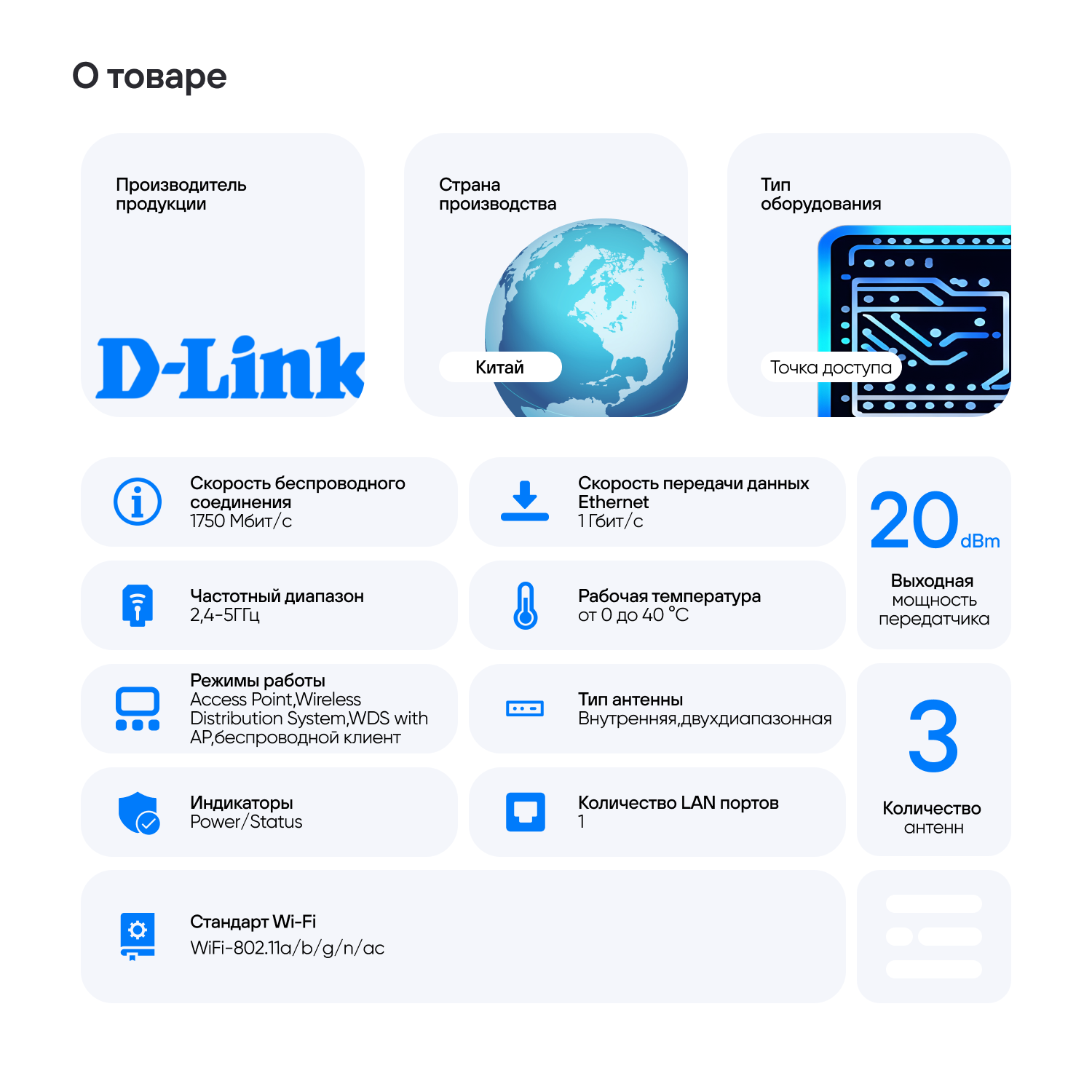 Точка доступа D-Link DAP-2680 (DAP-2680/RU/A1A) AC1750 10/100/1000BASE-TX белый
