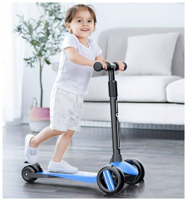 Самокат детский Danki Power складной для малышей мальчиков и девочек от 2 до 6 лет светящиеся колеса Синий цвет интересное: