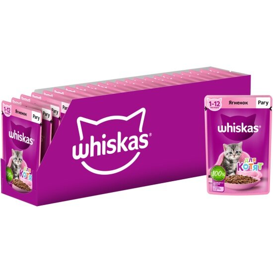 Купить Whiskas влажный корм для котят от 1 до 12 месяцев, рагу с ягненком, в паучах - 75 г х 28 шт