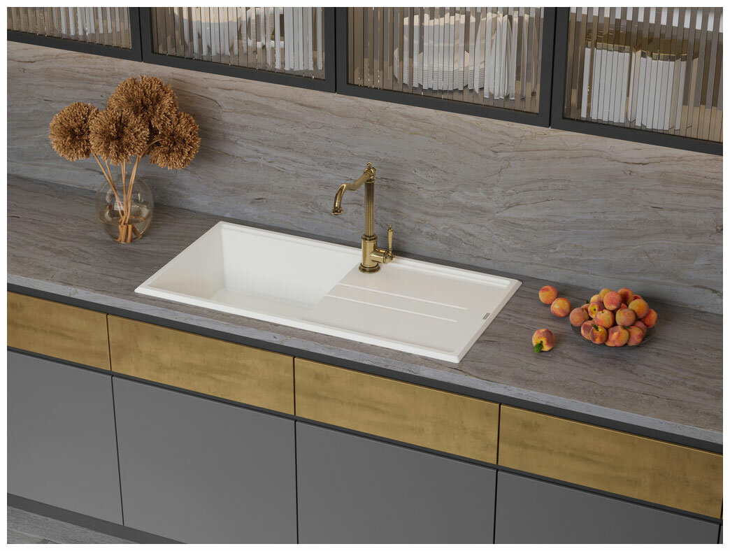 Кухонная мойка Карельский камень модель 150 (575*470) Q6 Слоновая кость