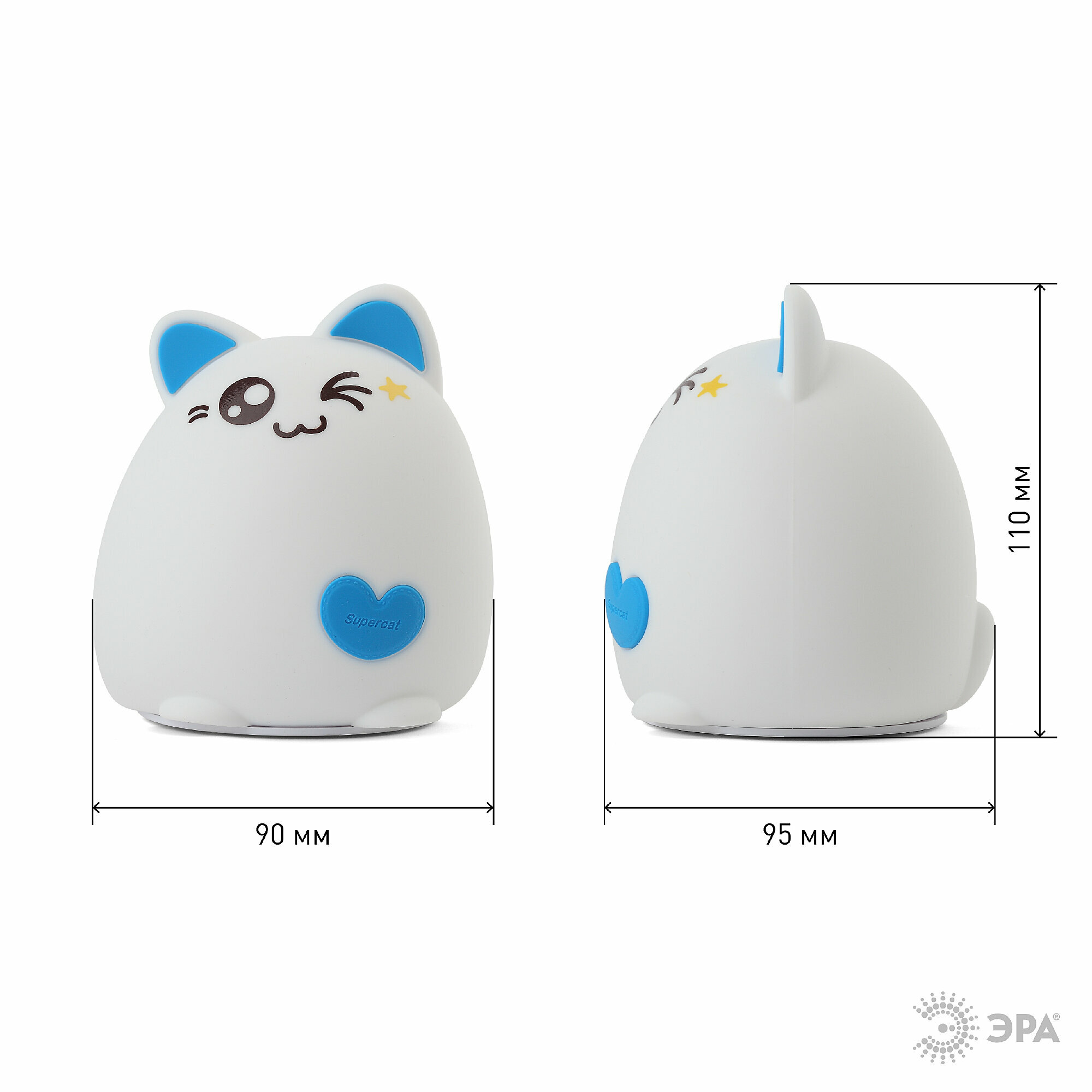 ЭРА ночник светодиодн. детский мягкий 1W NLED-413-1W-BU белый с синим котик, сенсор, RGB (3хААА) 3522 (арт. 710017)