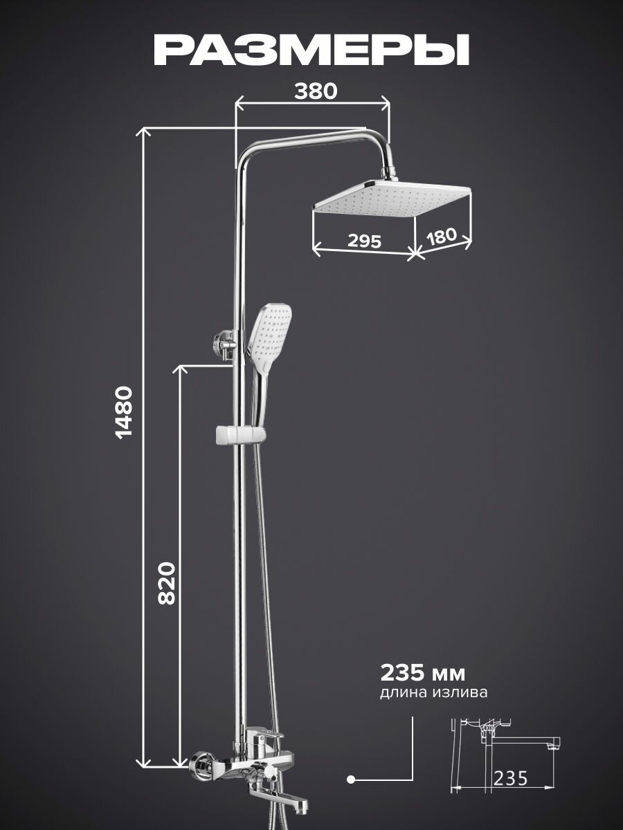 | Комплектация | верхний душ / излив для набора воды / ручной душ |