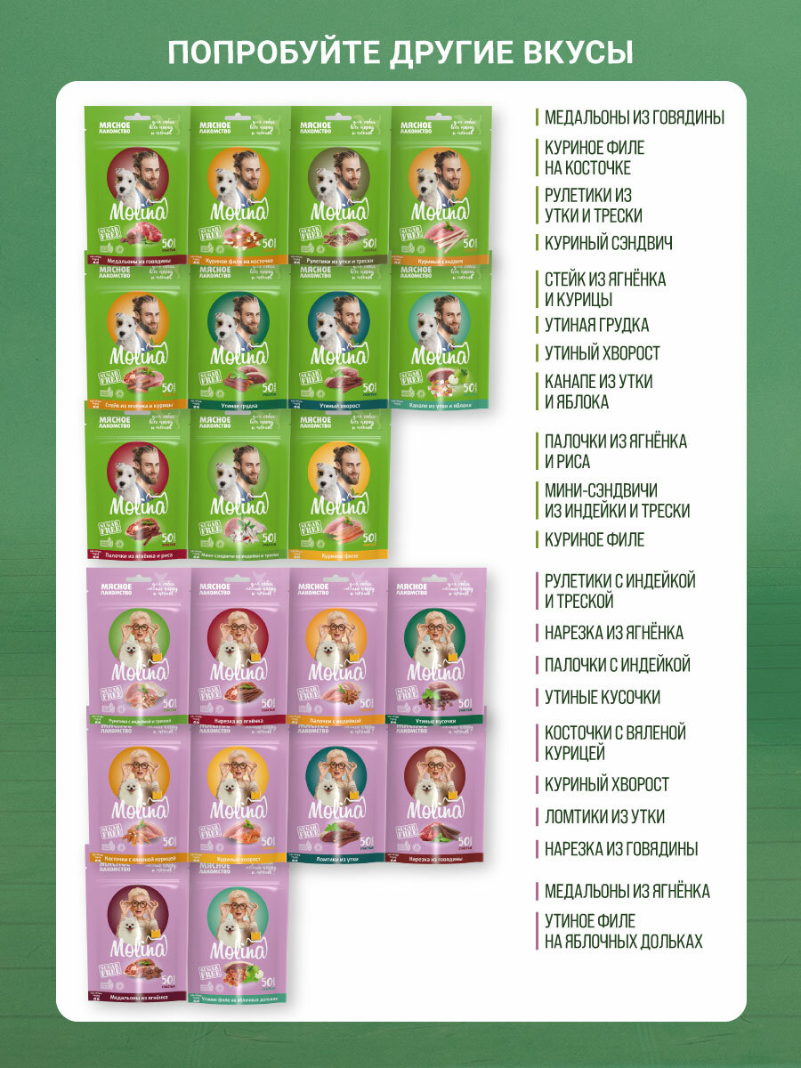 MOLINA, Лакомство для собак мелких пород и щенков, Куриный хворост, 50 г интересное: