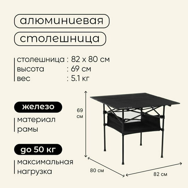 Стол туристический, 82 x 80 x 69 см, с органайзером, цвет чёрный