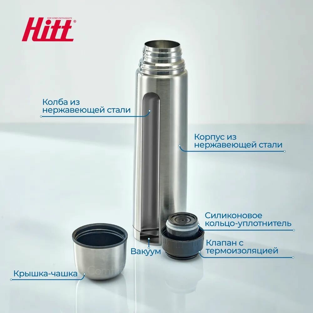 Термос 1 литр Hitt для чая, для кофе, из нержавеющей стали