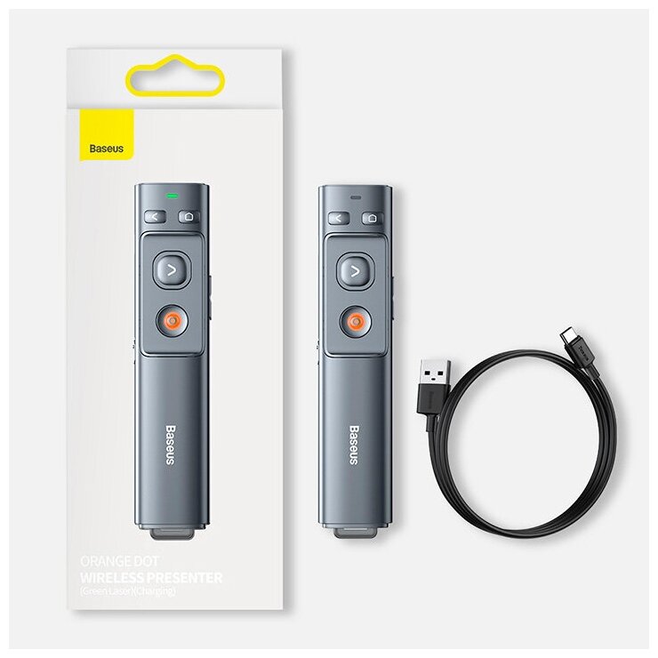 Лазерная указка для презентаций беспроводная USB Baseus Orange Dot Wireless Presenter Green Laser Charging Серая