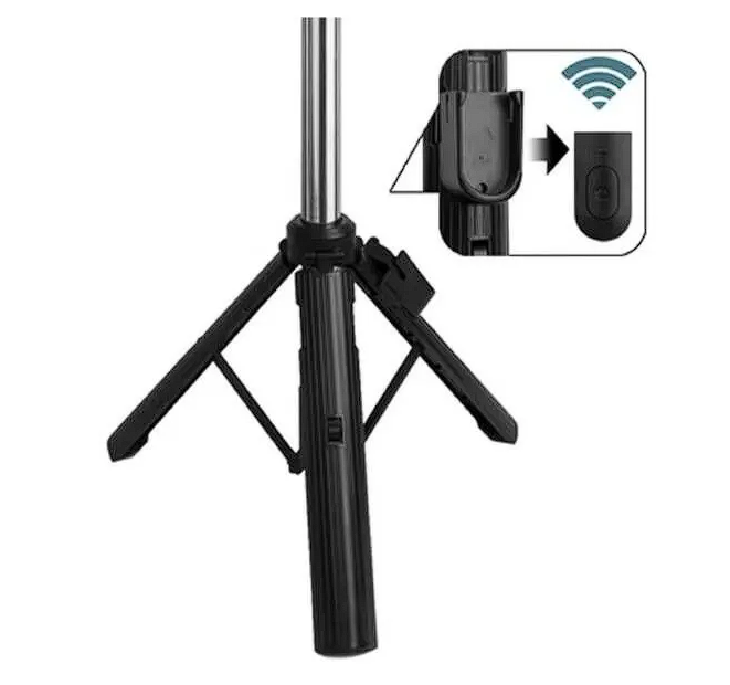 Монопод-трипод для селфи R1S, штатив трипод с регулируемым держателем для телефона и Bluetooth пультом, черный