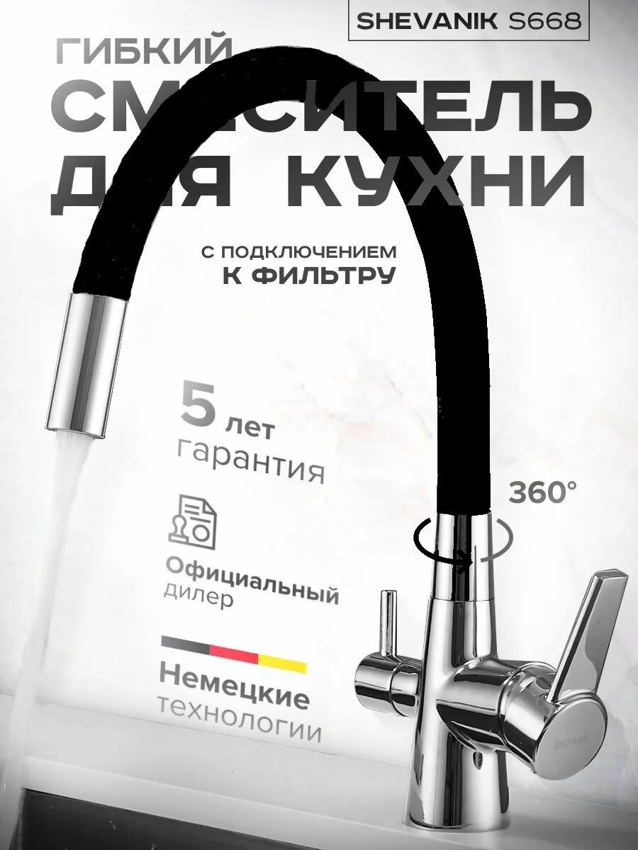 Смеситель для кухни с гибким изливом и подключением фильтра Shevanik S668H, черный