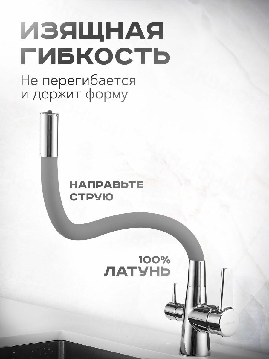 Смеситель для кухни с гибким изливом и подключением фильтра Shevanik S668, хром/серый