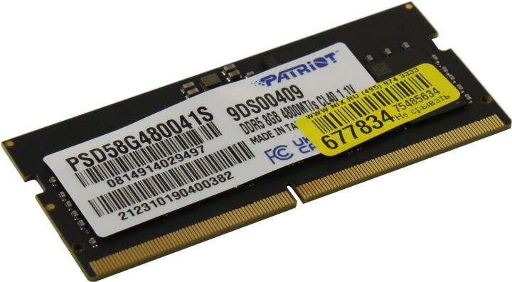 Модуль памяти Patriot Memory Signature Line DDR5 SO-DIMM 4800Mhz PC5-38400 8Gb PSD58G480041S