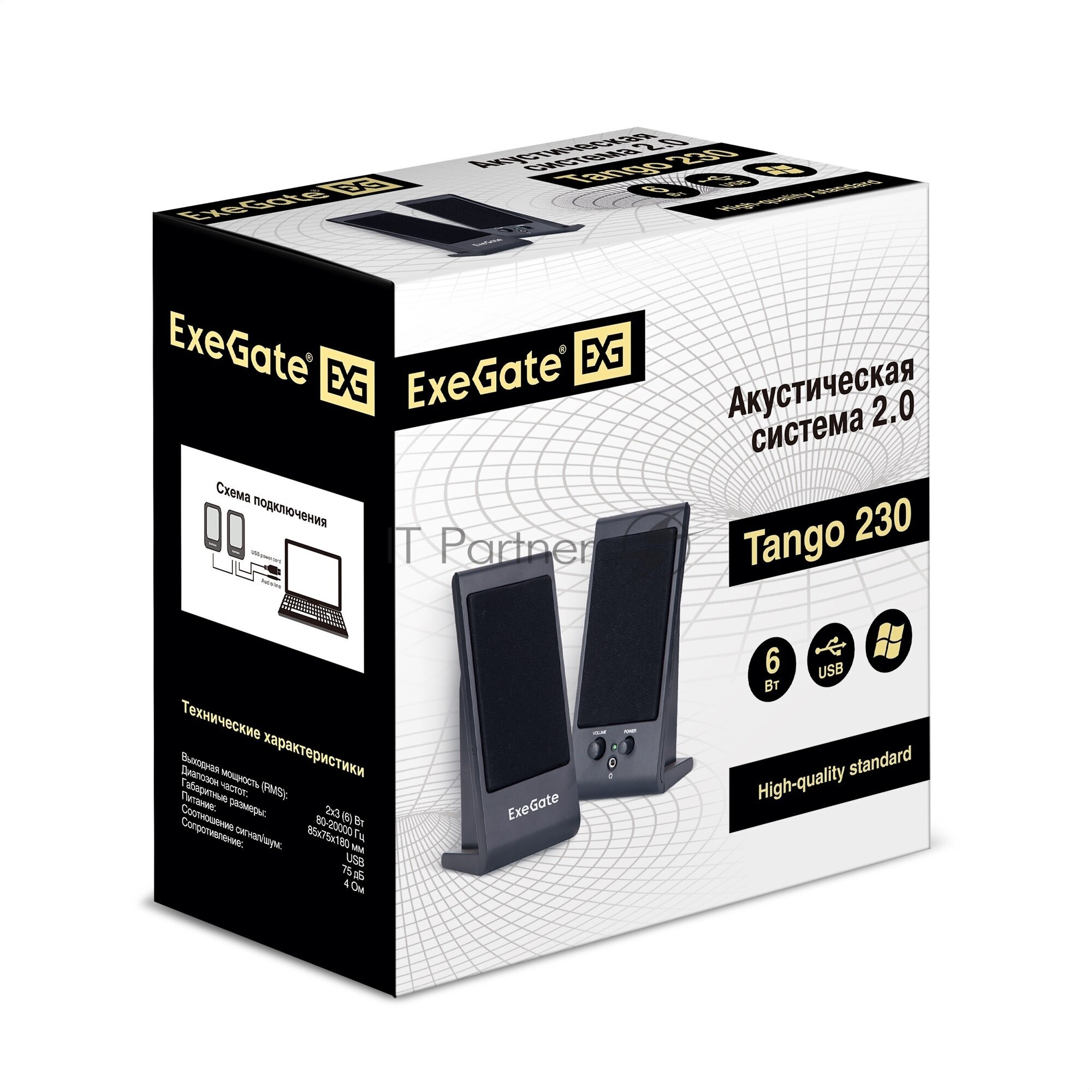 Exegate EX287056RUS Акустическая система 2.0 ExeGate Tango 230 (питание USB, 2х3Вт (Вт RMS), 80-20000Гц, черный)
